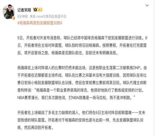 综上所述能够看得出来,目前杨瀚森的局面还是非常被动的,但至少能证明开拓者官方没有放弃杨瀚森还在给他机会去成长。作为新秀,在菜鸟赛季面临诸多挑战,频繁被下放显然是实力不足。杨瀚森应该更多的去专注于提高自己的体能和专注力,给机会的时候要抓住,尤其是杨瀚森的女友和妈妈,不要再过多的发声了,专注于鼓励小杨吧。
