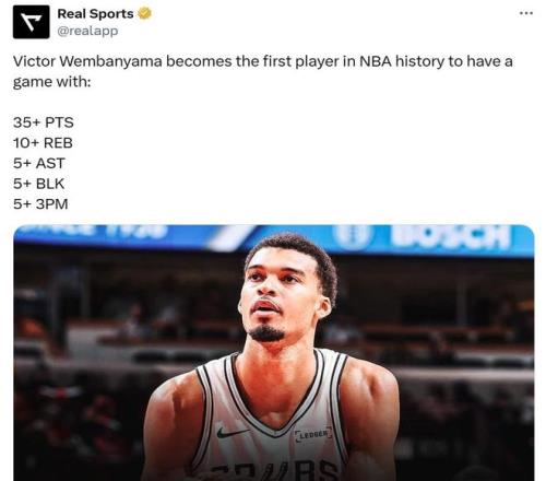 轰38分12板5助5帽,NBA历史首人!被夹懵的文班亚马怎么又行了