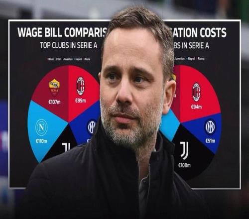 尤文、那不勒斯、罗马的工资成本分列意甲2-4位。如果计算工资账单和摊销成本的总和,那不勒斯以2.32亿欧元排名榜首,尤文2.31亿欧元紧随其后,米兰 1.93亿欧元排名第3,国米1.92亿欧元位居第4,罗马1.58亿欧元排在第5。