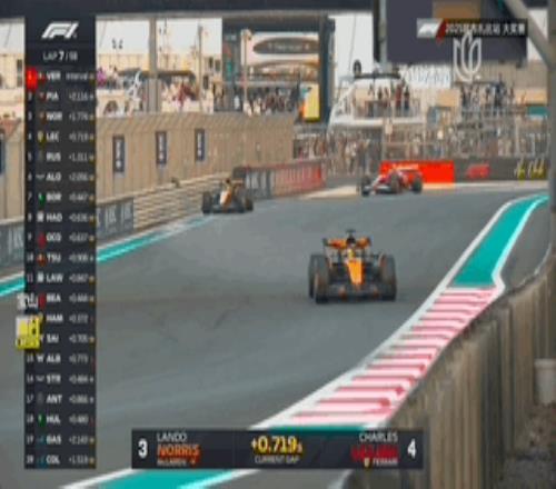 第4圈,诺里斯已经被皮亚斯特里甩出了DRS区,而此时身后的勒克莱尔已经进入到了射程之中!第8圈,勒克莱尔打开DRS之后已经来到诺里斯身后0.3秒左右的距离,他随时会发动进攻!为了兄弟维斯塔潘拼命,勒克莱尔连第四都不想要了......