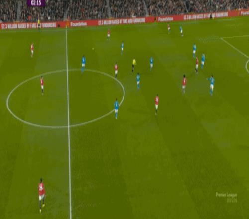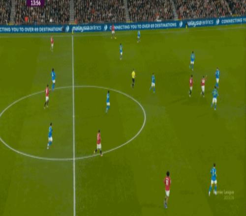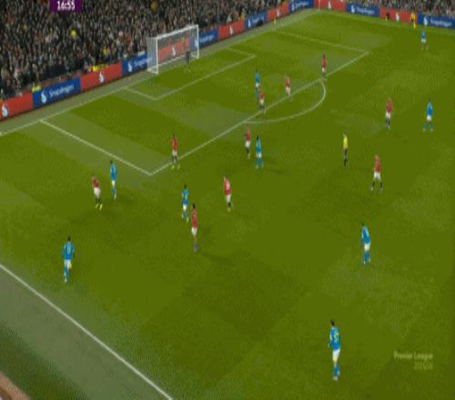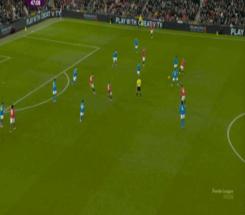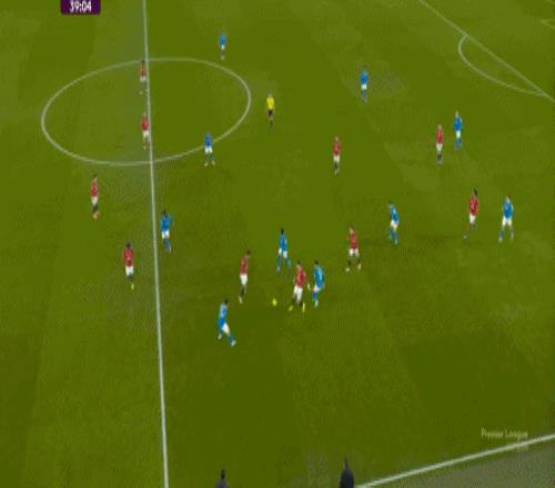 也能通过捕捉曼联的失误,吃掉库尼亚之后,从右路继续送出传中: