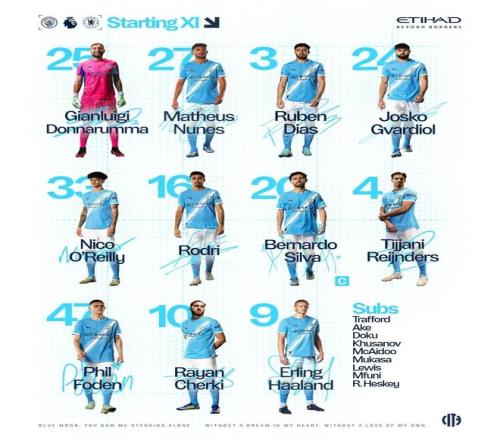 曼城vs切尔西:谢尔基PK帕尔默,哈兰德、埃斯特旺出战